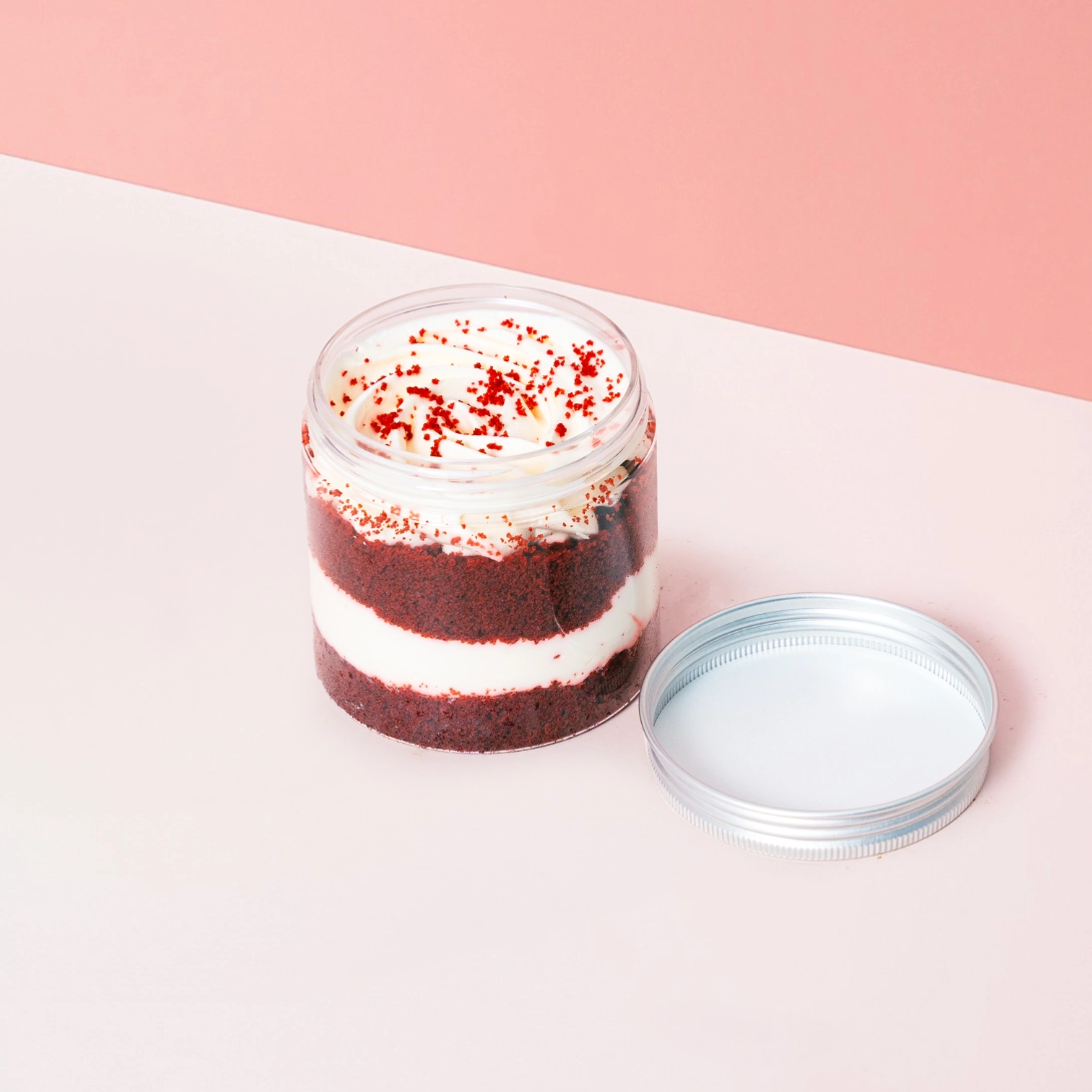 Layers of velvety red velvet cake with creamy cheesecake frosting for a perfectly balanced sweet and smooth flavor.